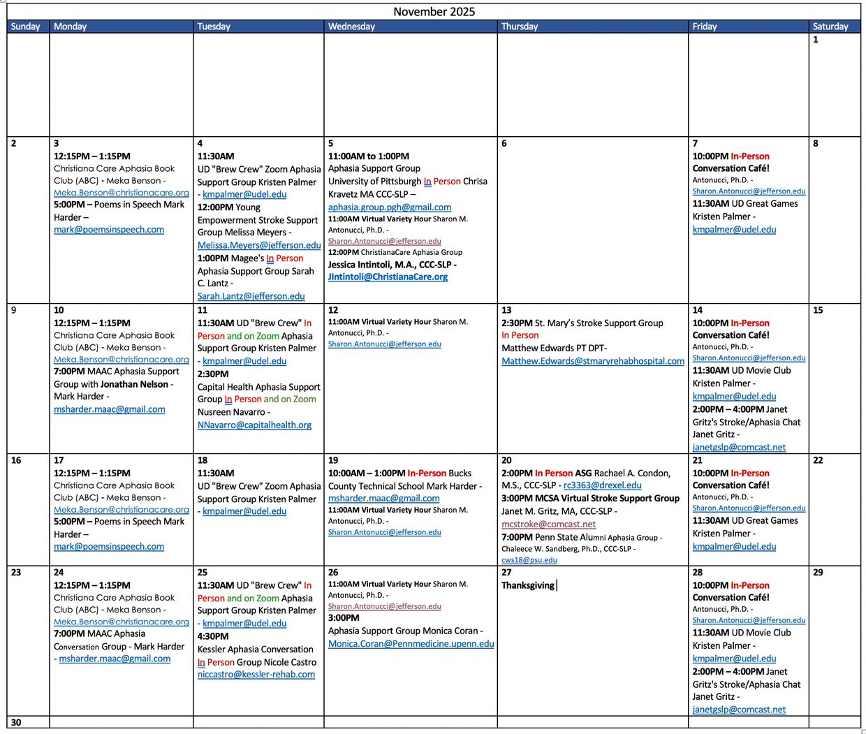 Sharon Antonucci - Director, The Aphasia Center at Jefferson Moss-Magee Rehabilitation at Sharon.Antonucci@jefferson.edu https://www.jeffersonhealth.org/clinical-specialties/aphasia-rehabilitation/supporting-your-care-journey